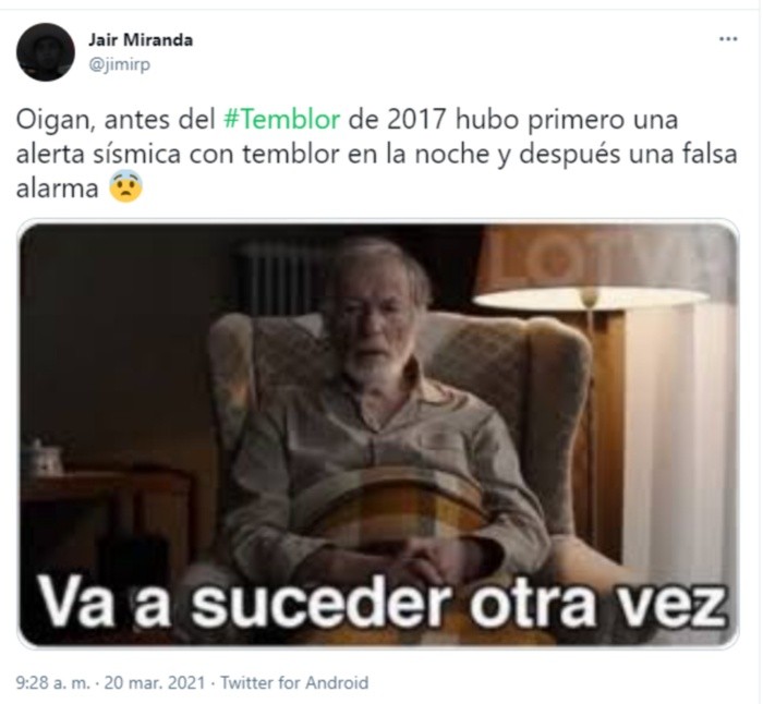 Aunque fue una falsa alerta sísmica, los usuarios en redes sociales, en especial en twitter, no tardaron en reaccionar y a compartir memes de lo ocurrido, además, que recordaron el sismo que sí alerta sismica. It terro beemo sa he.