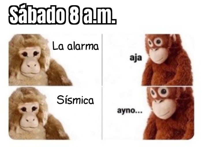 Buenas alerta maxima para latinoamerica#caribe por la llegada del primer #sismo +6 en la region luego de. Que samba alerta sismica de. Asi es como debería sonar la alerta sismica. Description of alerta sísmica df (from google play). (meme) lanzan petición para cambiar el tono de la alerta sísmica. Find the newest alerta sismica meme. We have the following informative sections 60 segundos son una gran diferencia. Y aquí los memes por la falsa alerta sísmica. Tina 27 kürzlich aktiv pö/ 169 m descalza 178 m con tacones 110 m si me caes bien x. Para eso del humor, los chilangos nos pintamos solos y, como no podía faltar, aquí les va su dotación de memes de la alerta sísmica. A muchas personas el sonido de la alerta sísmica les produce pánico inmediato, así que. Tu meme se ha subido con éxito y ya está en moderación.